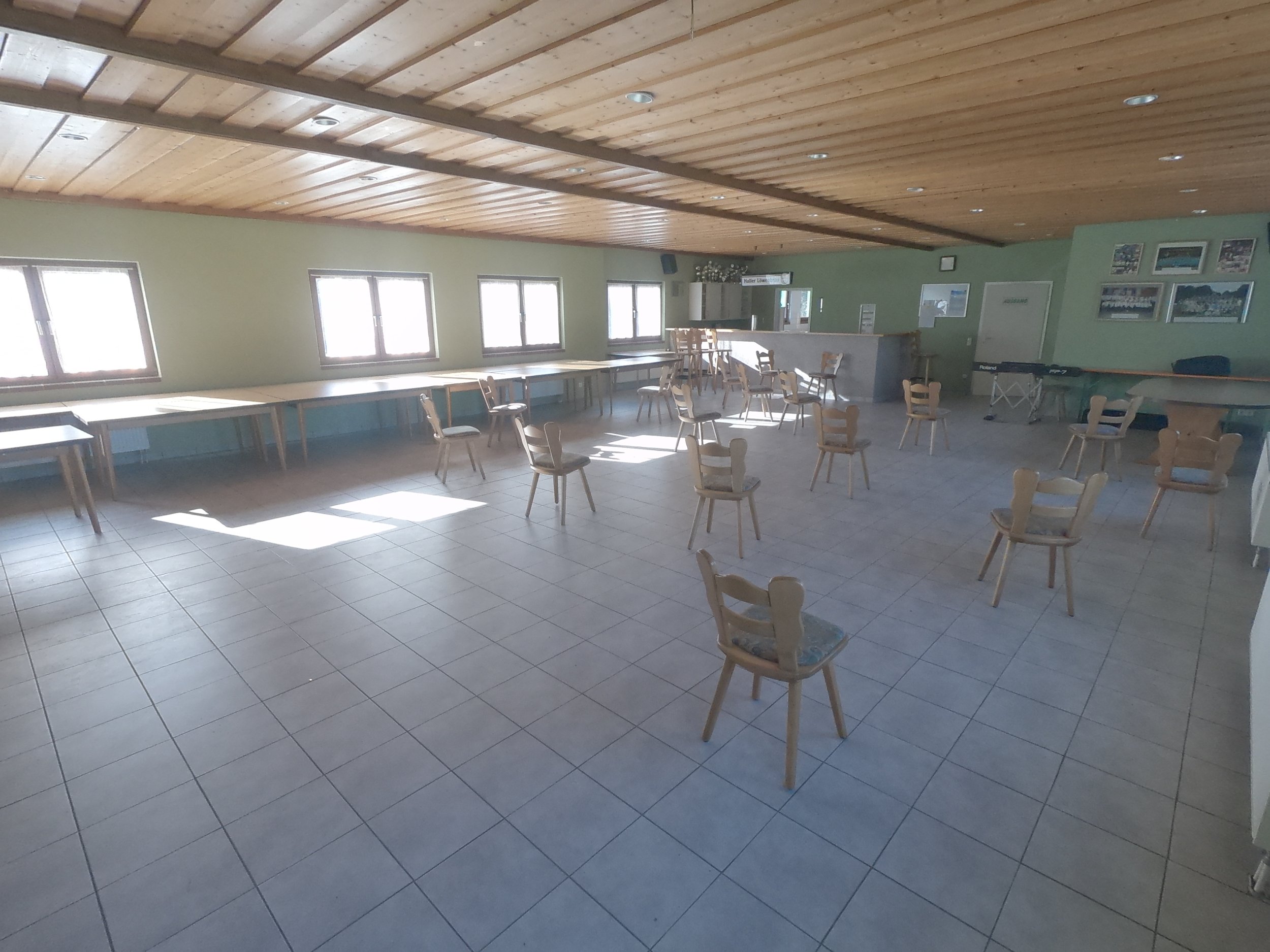 In der untenstehenden Galerie können Sie sich vorab bereits selbst ein Bild des Saals und des gesamten Clubhauses machen.